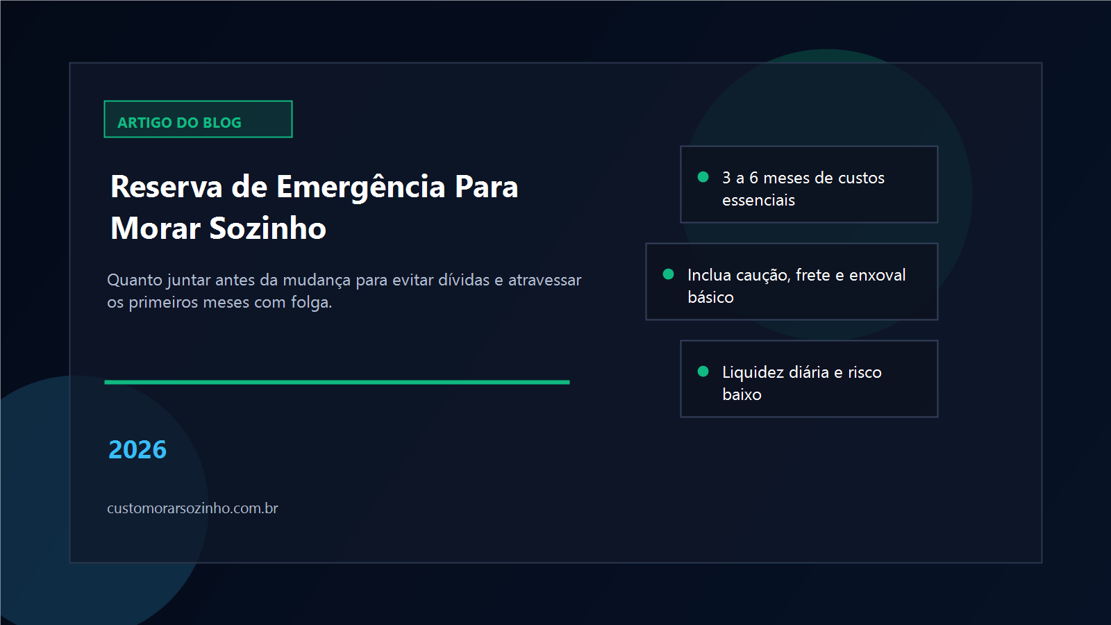 A resposta depende do seu padrão de vida, da cidade e do tipo de imóvel, mas existe uma lógica simples: sua reserva precisa cobrir os custos da mudança e bancar alguns meses de adaptação. Se quiser cruzar esse valor com a sua realidade, use também o simulador de custo de morar sozinho para estimar suas despesas mensais reais.